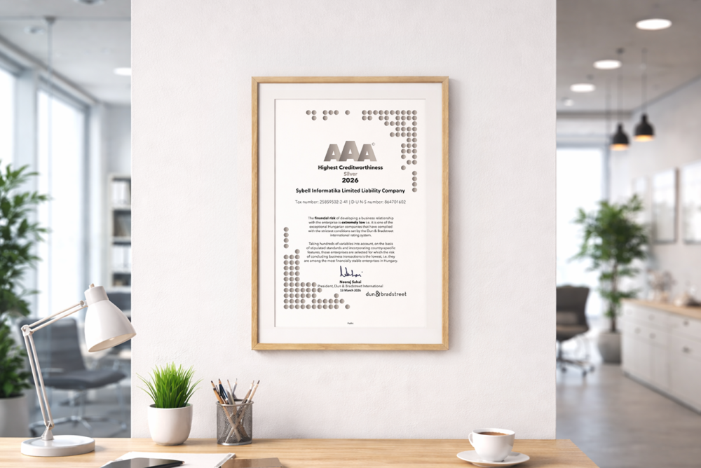 A 100%-ban magyar tulajdonú Sybell Informatika Kft. 2026-ban elnyerte a Dun & Bradstreet Silver tanúsítását, amely nemzetközi szinten is a legmagasabb pénzügyi stabilitást és üzleti megbízhatóságot jelzi.